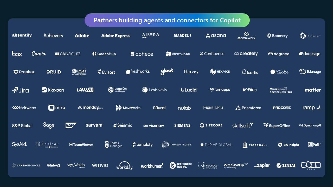 Nous élargissons également notre catalogue de connecteurs Copilot prédéfinis, qui permettent de lier Copilot et ses agents à d’autres sources de données d’entreprise, y compris des applications provenant d’éditeurs de logiciels indépendants et d’intégrateurs système de premier plan. Grâce à ce catalogue de connecteurs amélioré, les équipes peuvent accéder aux données de l’ensemble de l’entreprise et les utiliser directement au sein de Copilot et des agents afin d’obtenir des informations et des actions plus significatives pour des tâches individuelles et des initiatives organisationnelles à grande échelle.